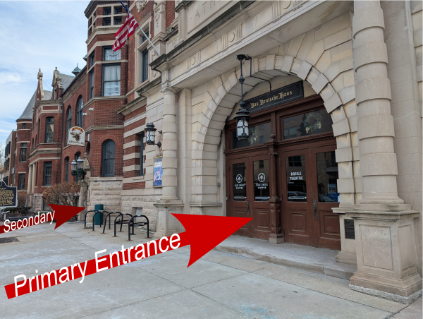 Primary Entrance: Use the Coat Check Coffee/Basile Theatre doors.